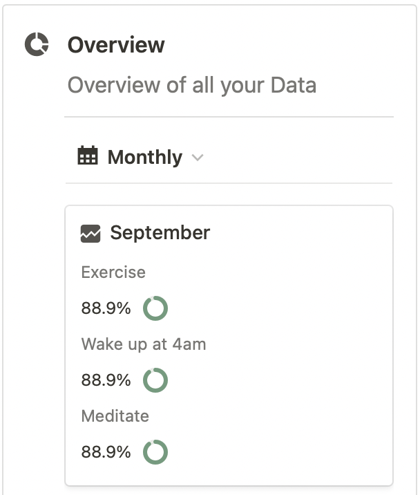 This Database allow you track the percentage of your habit in weeks, months and Yearly